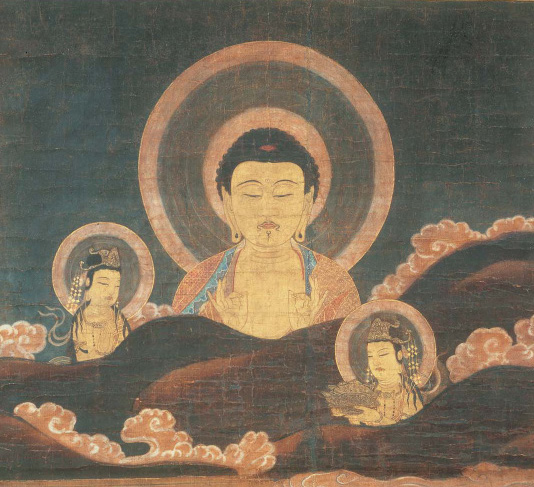 Artwork: Giáo chủ A Di Đà cùng chúng hội Bồ Tát, Nhật, thời kỳ Nanbokucho, thế kỷ 14.