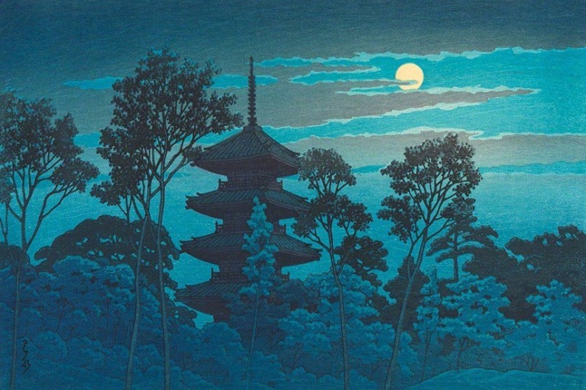 Artwork: Moon night Crescent moon by Hasui Kawase (川瀬 巴水).