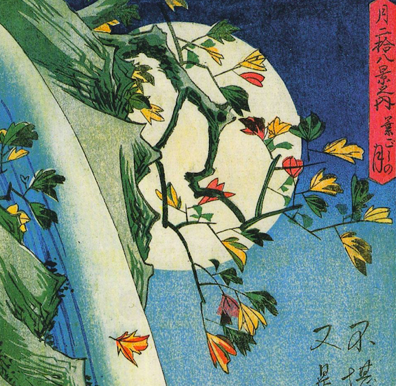 Artwork: The moon over a waterfall by Hiroshige.
