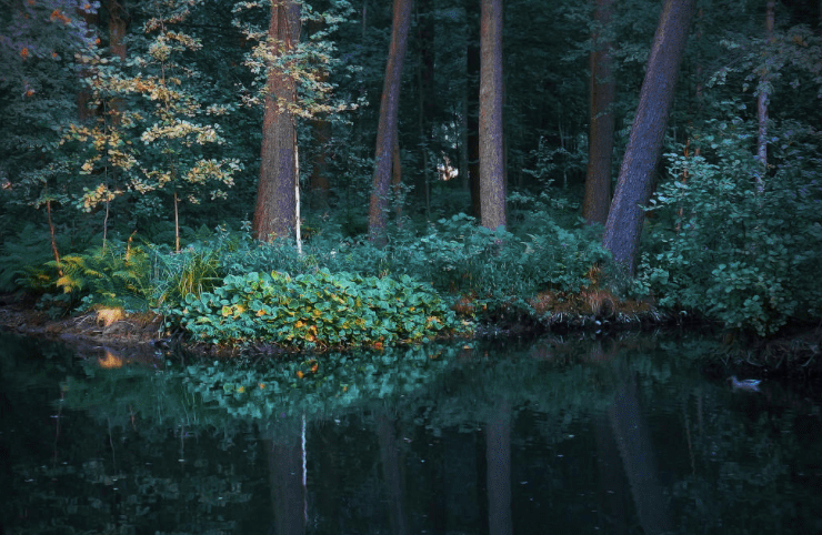 Beside the shore.