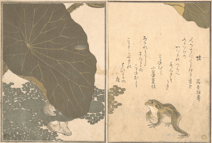 * Artwork: Frog (Kaeru); Gold Beetle (Kogane mushi), from the Picture Book of Crawling Creatures (Ehon mushi erami) 1788 by Kitagawa Utamaro.