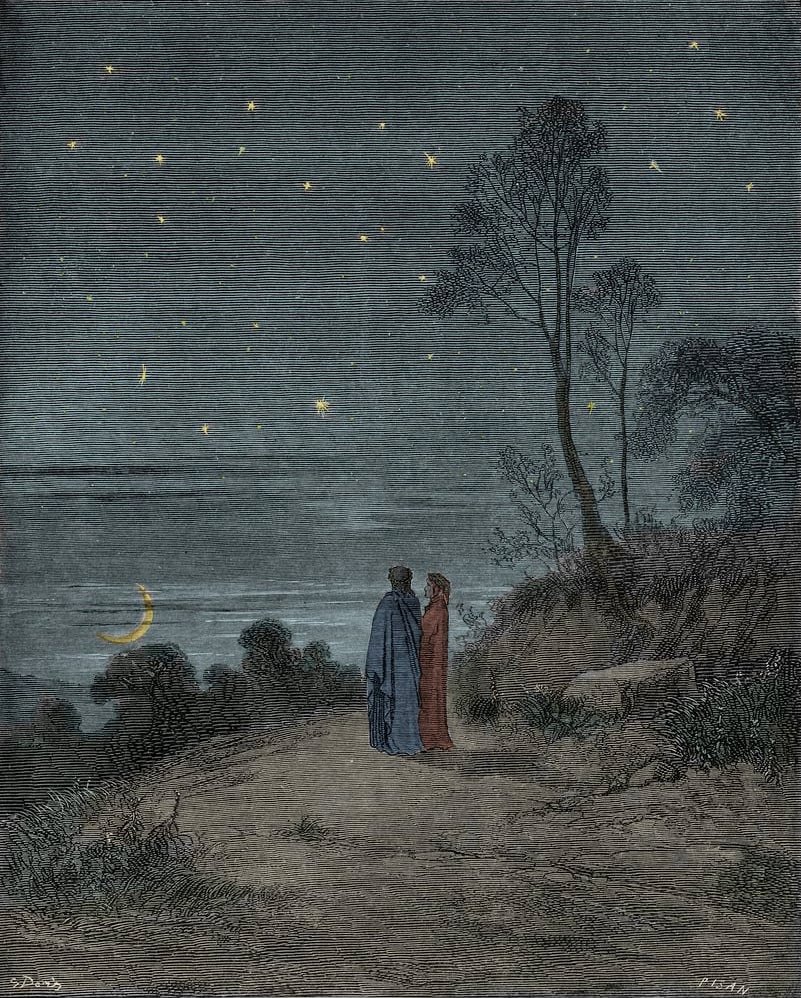 * Artwork: Inferno, Canto 2 : The darkening sky of the first night, illustration from “The Divine Comedy” by Dante Alighieri, 1885.