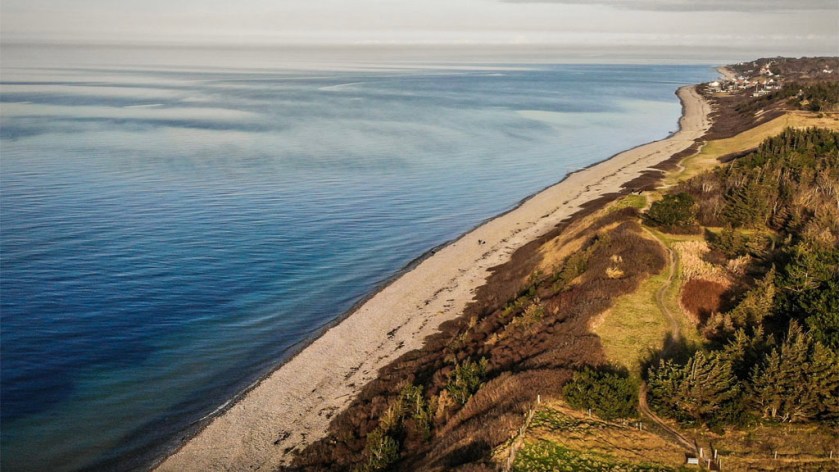 Nhìn sang trái, đồng cỏ và biển xanh: