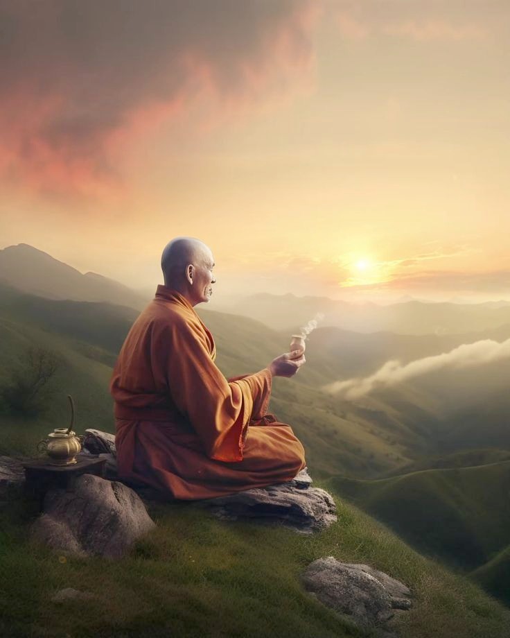 Ryokan được mời tham dự một buổi trà đạo. Khách mời theo trình tự sẽ dùng chung một bát trà đậm. Ryokan uống cạn bát trà mà không hề nhận ra vị khách kế bên đang ngồi chờ. Ông vội nhổ một ít trà vào bát rồi chuyền đến tay vị khách. Không còn sự lựa chọn nào khác, vị khách đành uống cạn bát trà trong khi niệm “Nam Mô A-Di-Đà Phật.