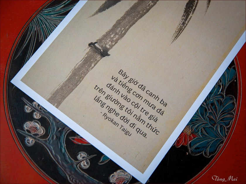 Cho những ai quan tâm, đây là bộ tranh-thơ rút ra từ tuyển tập Trời Cao Gió Lộng với hơn 200 bài thơ của ngài do tôi dịch trong vòng 3 năm qua; gồm các bài thơ haiku (bài cú), kanshi (hán thi) và waka (hoà ca). Nếu so với số lượng các tác phẩm của ngài được dịch ra tiếng Anh (khoảng 180-200 bản dịch trong 4 ấn phẩm của 3 dịch giả khác nhau) thì số lượng tác phẩm của ngài được dịch ra Việt ngữ không thua kém gì. Tuyển tập này là một phần trong dự án chuyển dịch thơ ca Nhật Bản sang tiếng Việt của tôi, bên cạnh những dự án khác (thơ Đức thế kỷ 20, thơ hiện đại Mỹ, Đường Thi và Thần Khúc…) mà tôi đang thực hiện.
