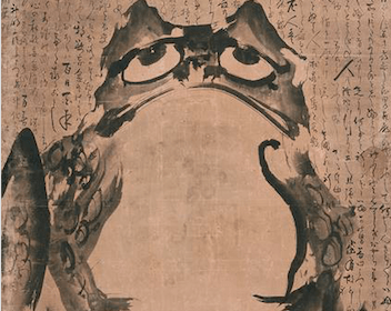 Haiku (35) Dưới mái tranh xiêu chú ếch nghèo cùng ta nhịn đói. Artwork: Frog and Mouse by Getsuju, late
