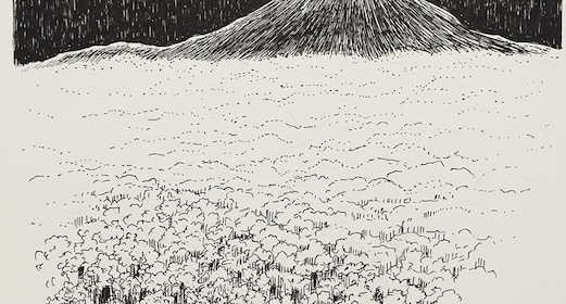 Haiku (60) Tám gió lặng yên nở trên triền núi bông anh đào đầu tiên. Artwork: Mount Fuji.