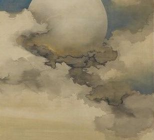 Haiku (59) Tăng khách ra về đồi cao gió lộng một vầng trăng quê. Artwork: Moon in Clouds. Hanging scroll.