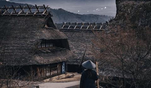 Haiku (40) Mưa chiều cô thôn một con bướm lạc qua miền Vô Môn. * Vô Môn Quan (Ải không